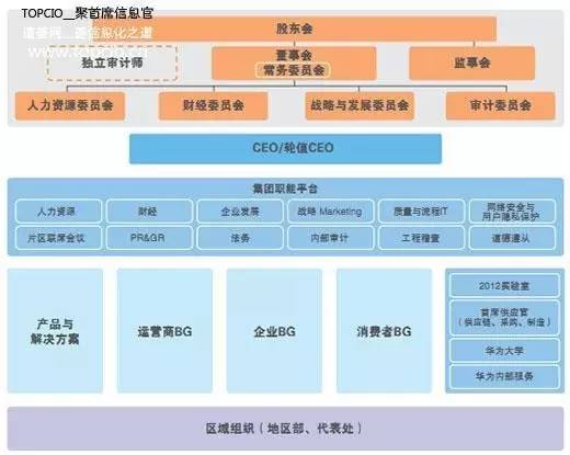 在具體的組織架構上,我們可以從三個維度來看華為: