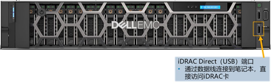 運維人員只需攜帶一根數據線連接前面板USB管理口,無需插拔任何其他線纜,即可直接與Web界面、WSMan等iDRAC界面交互,實現管理和維護功能,方便安全(此功能免費)。