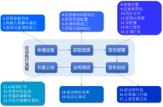 參照持續交付的原則“為軟件發布創建可重復且可靠的流程”,為解決人類操作體驗差異的問題,運維團隊利用流程DIY編排能力,實現標準化操作的固化. “軍裝合影”活動擴容,任何運維人員只需執行每日P圖的擴容功能即可實現擴容,云織過程將自動完成整個業務部署和上線運營。(如下所示)
